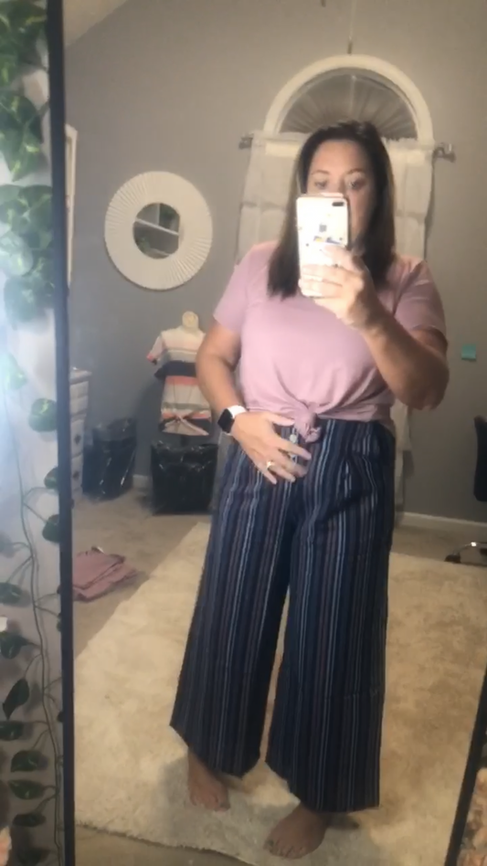 New Pink Stripe Sleeveless Knit Cropped Sweater Top